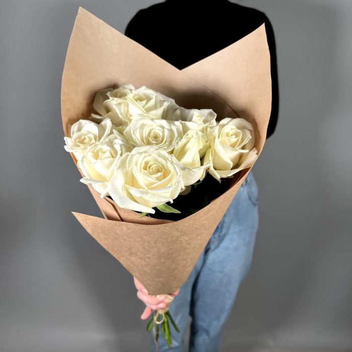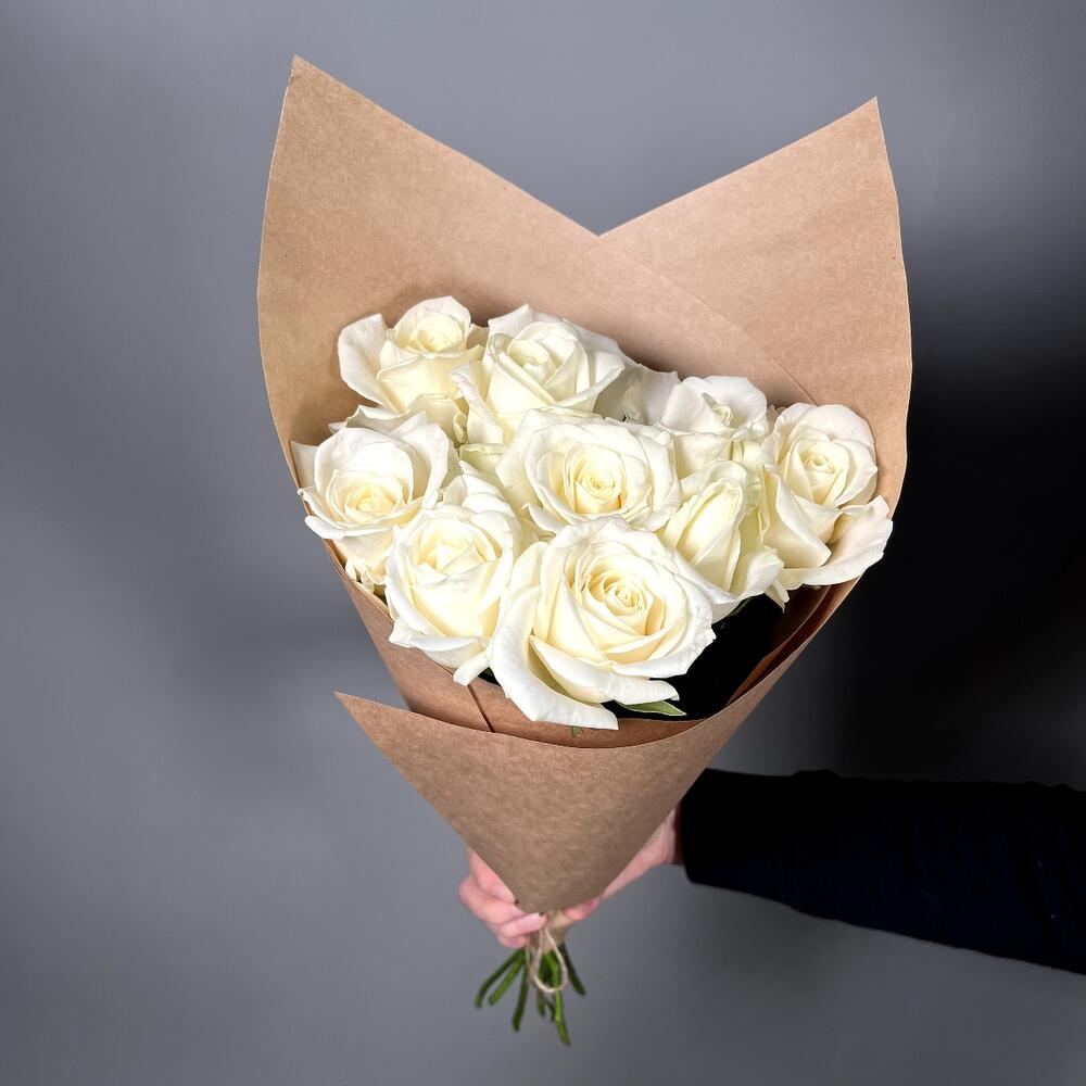 Крафт упаковка – 1 шт.белая роза россия – 9 шт.