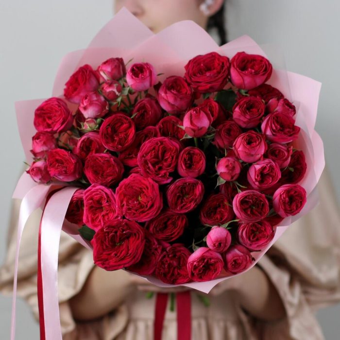 9 красных кустовых пионовидных роз Роял трендсеттер