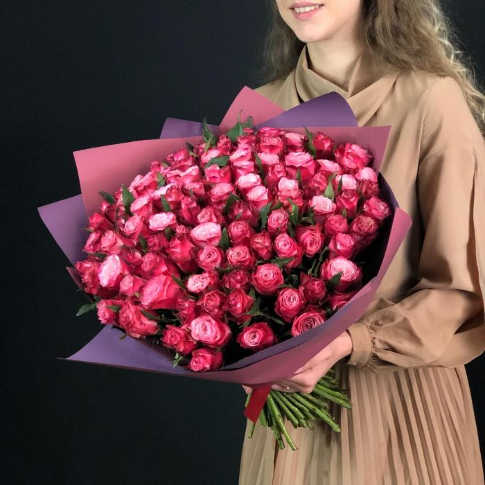 Букет 101 малиновая роза