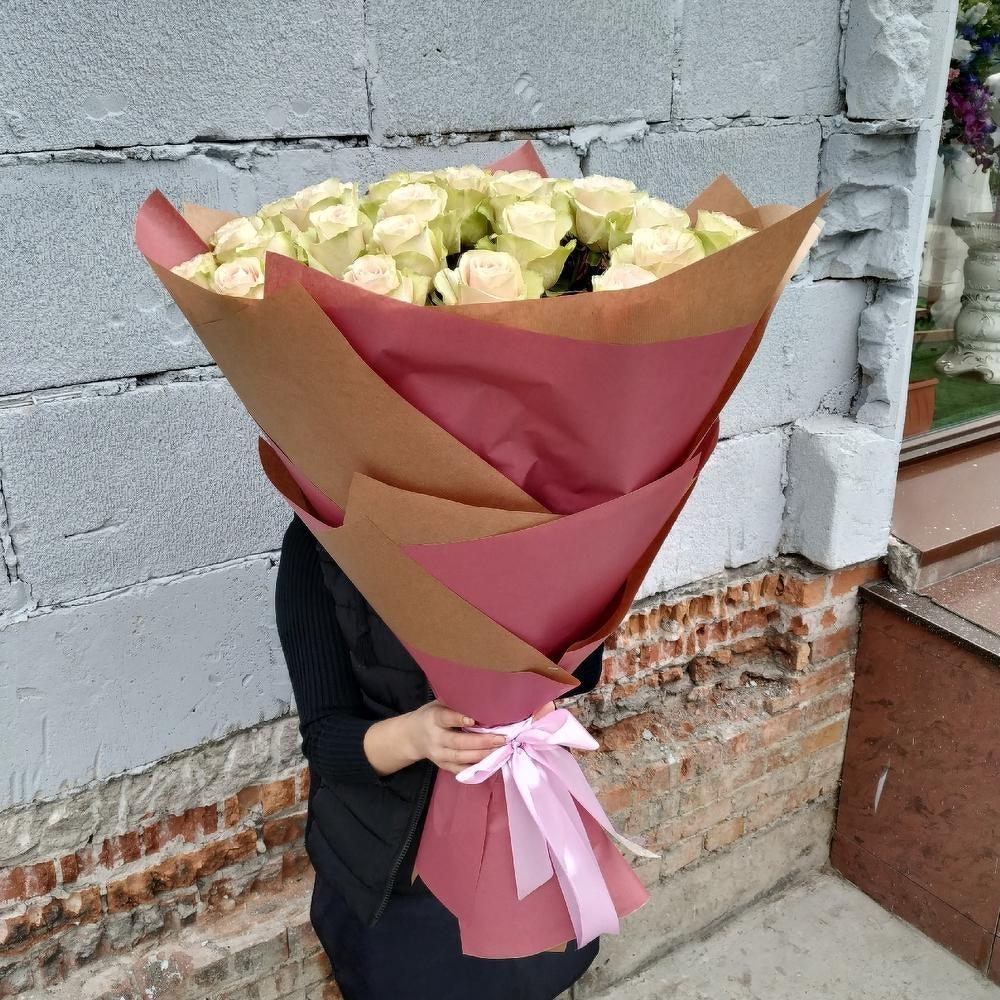 Роза Эквадор – 35 шт.Лента атласная – 1 шт.Упаковка дизайнерская – 1 шт.