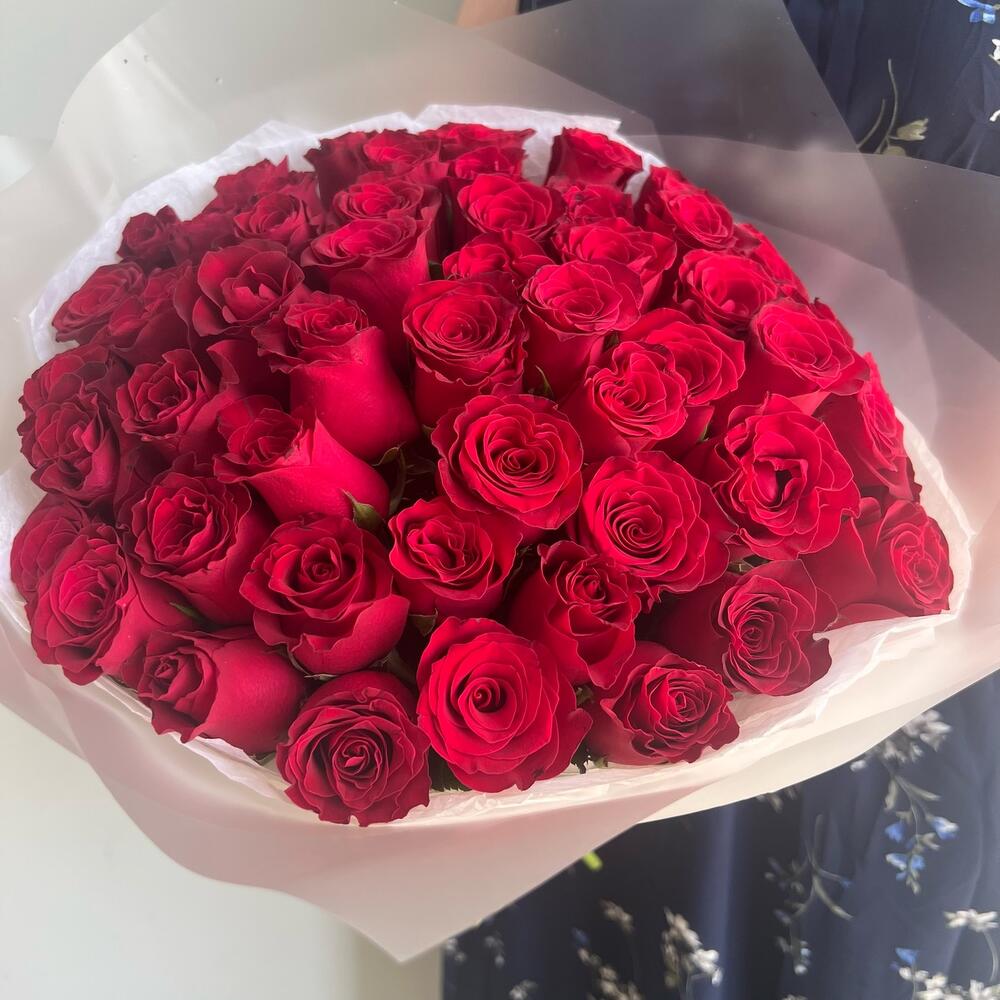 Букет 51 красная роза (Кения) в стильной упаковке