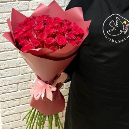 роза красная freedom – 31 шт. роза ohara – 20 шт. Оформление – 1 шт.