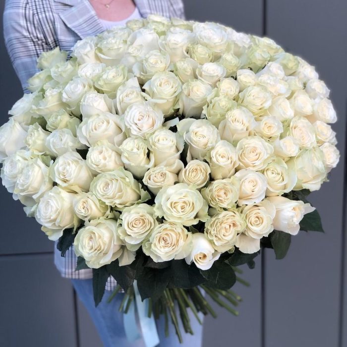 Метки: 101 роза, 14 февраля, Белые розы, от 5000 руб, Роза 60 см