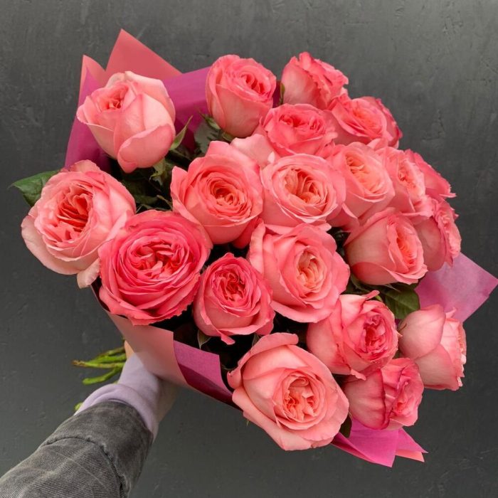 Букет из 21 пионовидной розы Пинк Экспрешн