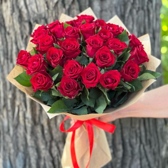 Роза красная 50 см – 29 шт. Упаковка крафт – 1 шт.