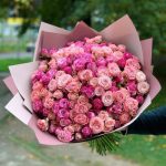 кустовая роза мисти баблез – 51 шт. Упаковка дизайнерская – 3 шт. Открыточка с вашими пожеланиями – 1 шт.
