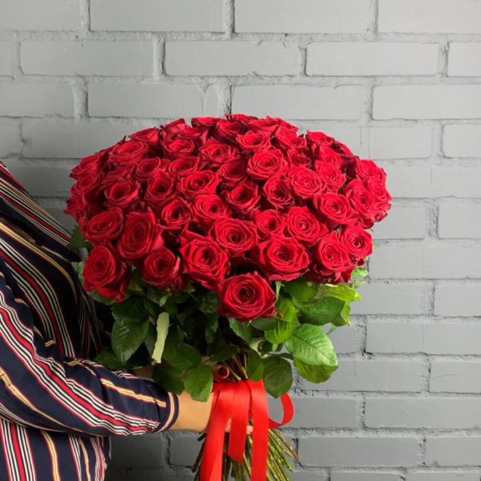 красная роза 55 см red naomi – 51 шт.