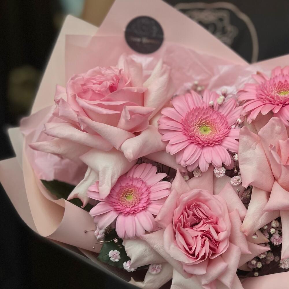 Категории: Герберы, Гипсофила, Пионовидные розы, Розы