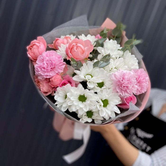 Категории: Гвоздики, Пионовидные розы, Розы, Хризантемы