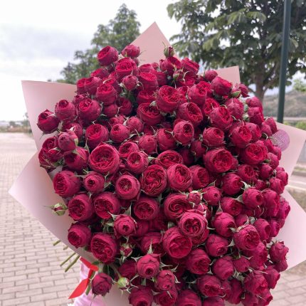 роза кустовая (веток) – 30 шт. Упаковка – 1 шт. Атласная лента – 1 шт.