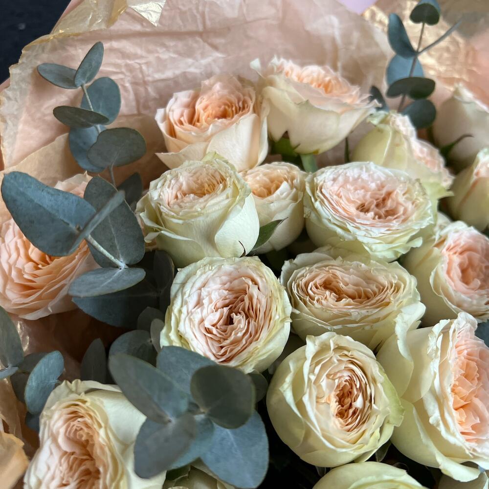 Букет из кустовой розы Павлова и эвкалипта