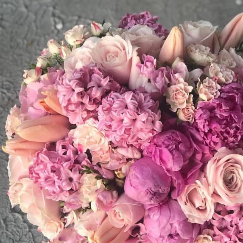 Букет из пионов, гортензий, тюльпанов, сирени и ассорти роз