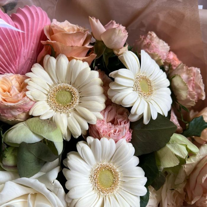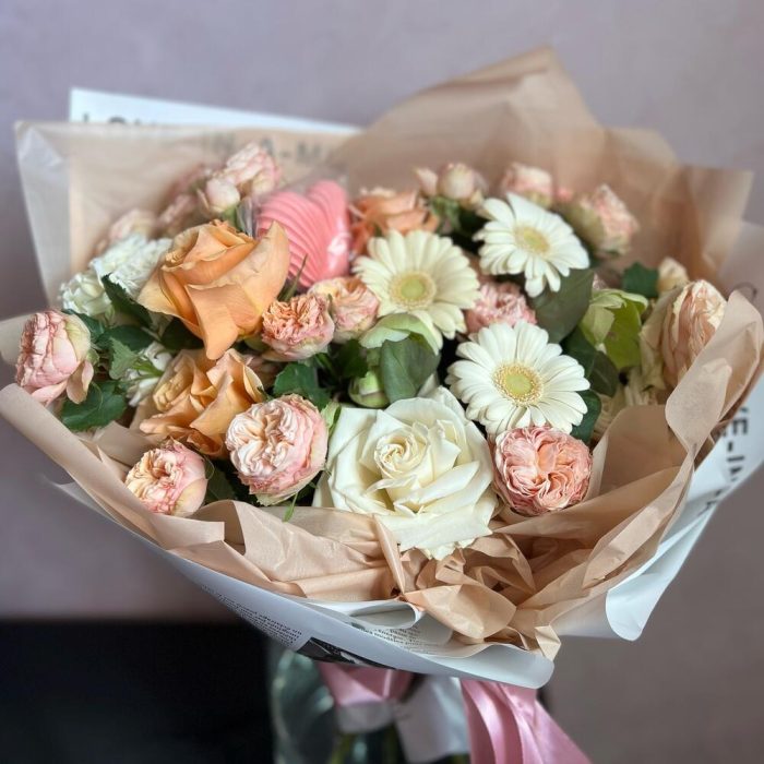 Букет из пионовидных роз и гербер