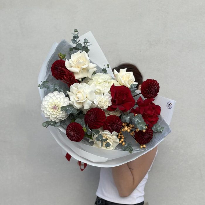 Элегантный букет в багрово-белых тонах.