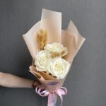 Этот букет имеет компактный размер и состоит из трех красивых роз. Цвет роз может варьироваться в зависимости от наличия и предпочтений клиента.