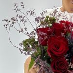 Букет состоит из лотоса и роз. Лотос символизирует чистоту и духовное просветление своими нежными лепестками и уникальной формой, а розы приносят романтику и красоту своими изящными цветами. Это сочетание создает букет, который воплощает гармонию и элегантность, принося радость и восхищение своей утонченностью.