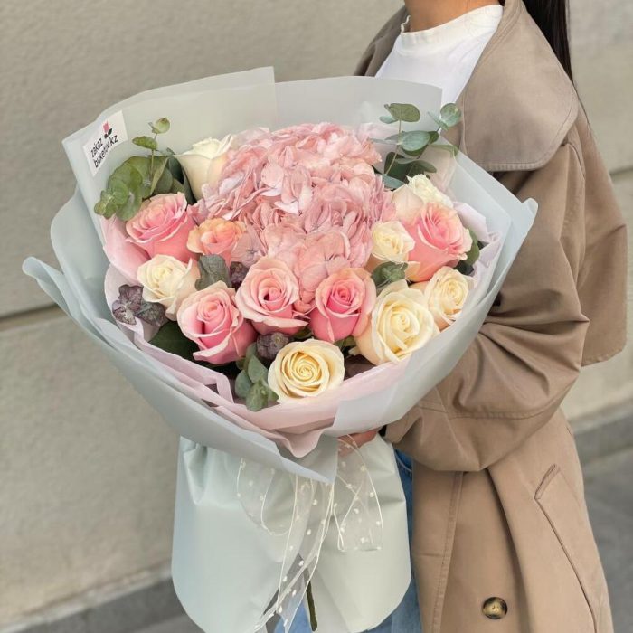 Альстромерии, Кустовые розы, Лизиантусы, Пионовидные розы, Розы, Ромашки