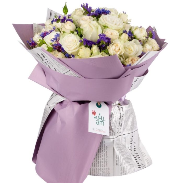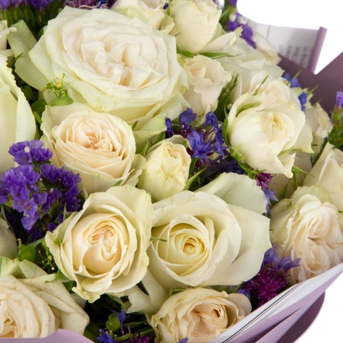 Цветы: роза, кустовая роза, лимониум.
