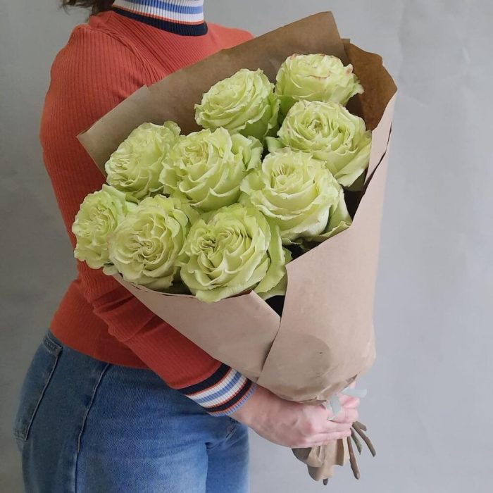 Роза лимонад – 9 шт.Упаковка крафт – 1 шт.Лента атласная – 1 шт.