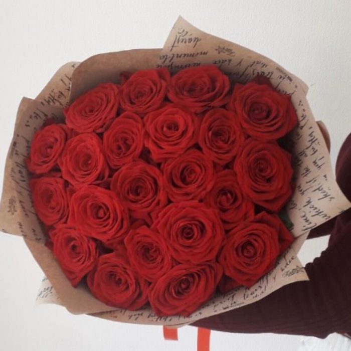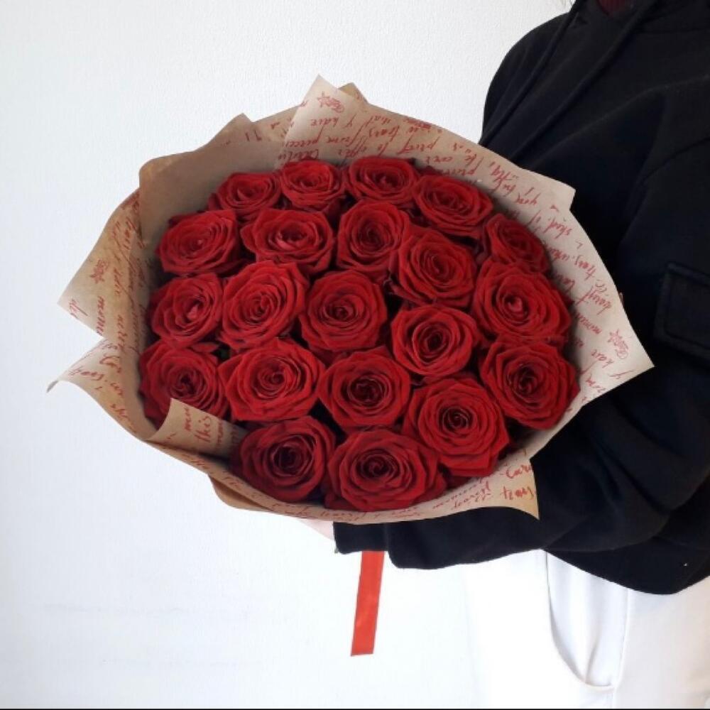 Лента атласная – 2 шт.Роза Эквадор 60 см – 21 шт.Крафт упаковка – 2 шт.