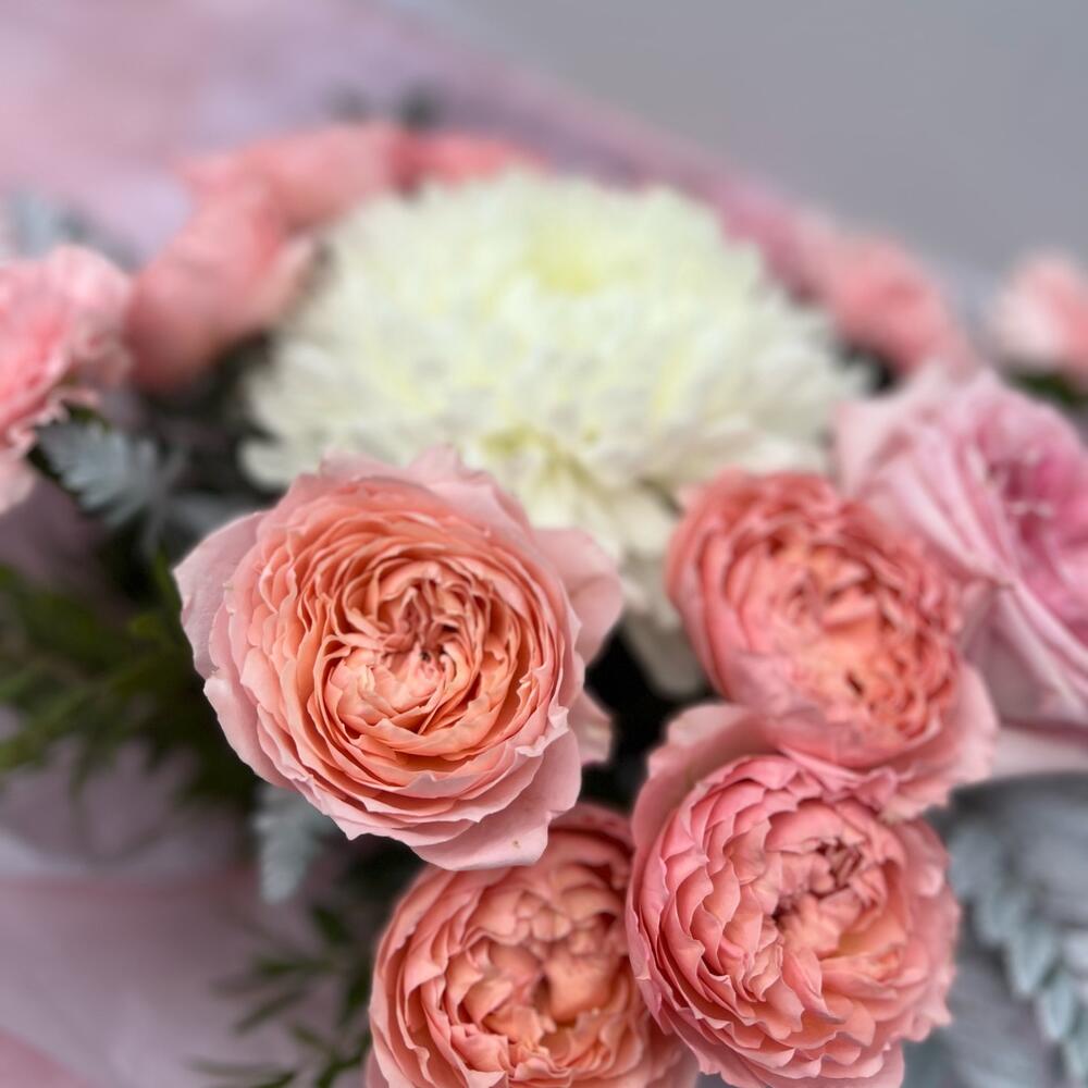 Категорий: Гвоздики, Кустовые розы, Пионовидные розы, Розы, Хризантемы
