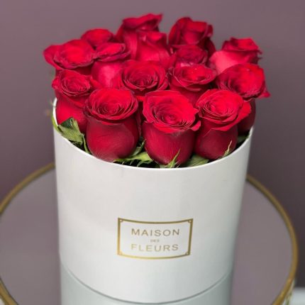 роза с французским раскрытием – 35 шт. Коробка – 1 шт. Оазис флористический – 3 шт.