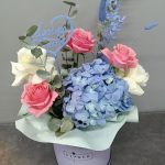 Гортензия – 1 шт. Сухоцветы – 1 шт. Открыточка с вашими пожеланиями – 1 шт. Голландская роза – 5 шт. Эвкалипт – 4 шт.