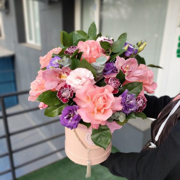 Букет цветов в фиолетовых, розовых и кремовых тонах