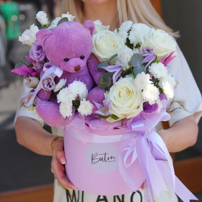 Цветы в коробке с мишкой