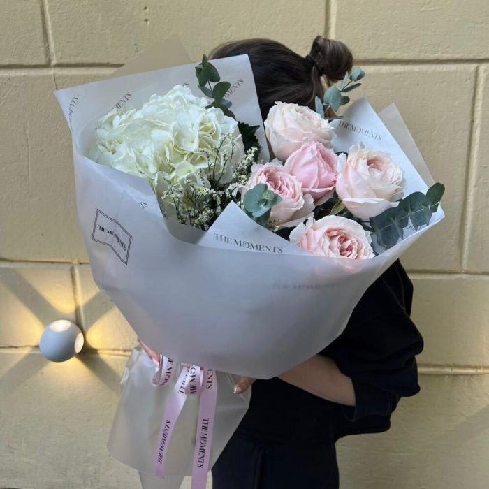 “Эвкалиптическая роскошь” гортензия и пионовидная кустовая роза
