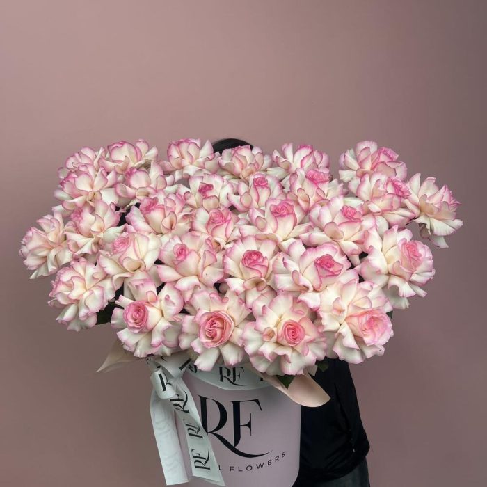 Шляпная коробка розовых пионовидных кустовых роз (N 162)
