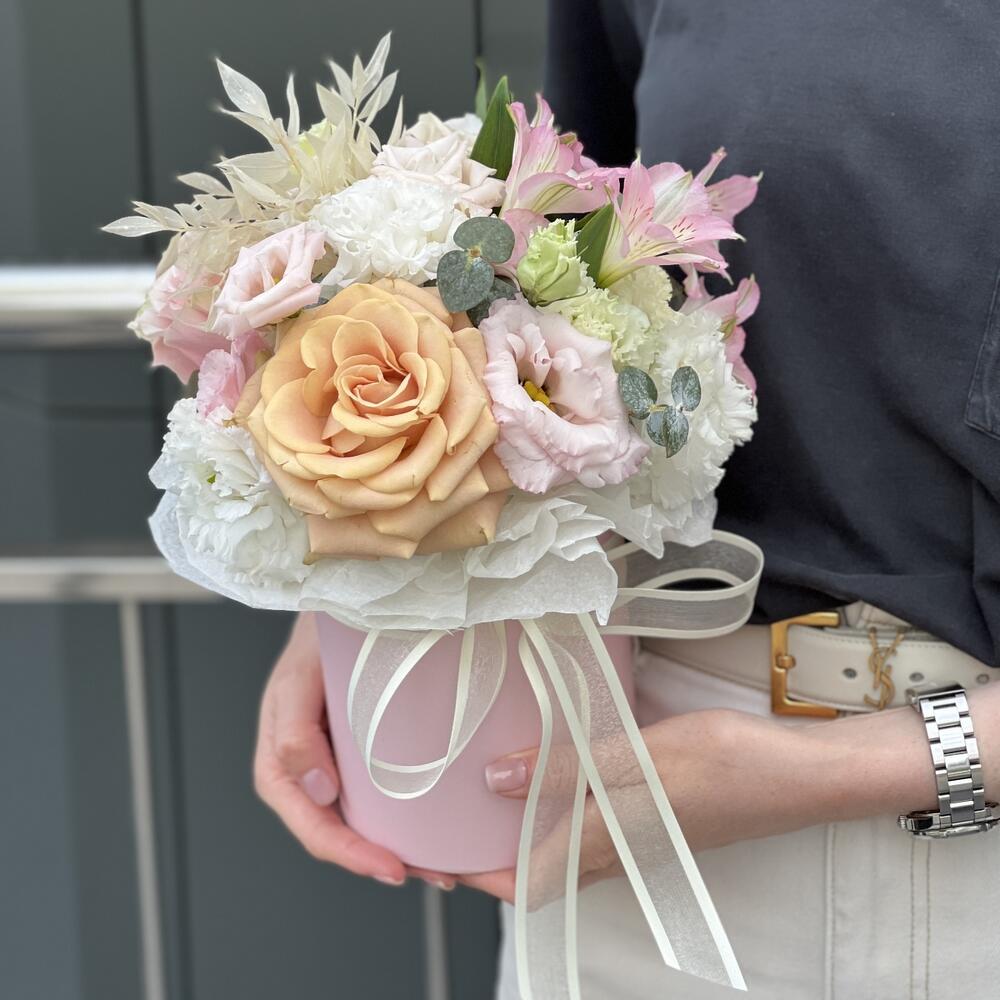 Альстромерии, Кустовые розы, Лизиантусы, Пионовидные розы, Розы, Ромашки