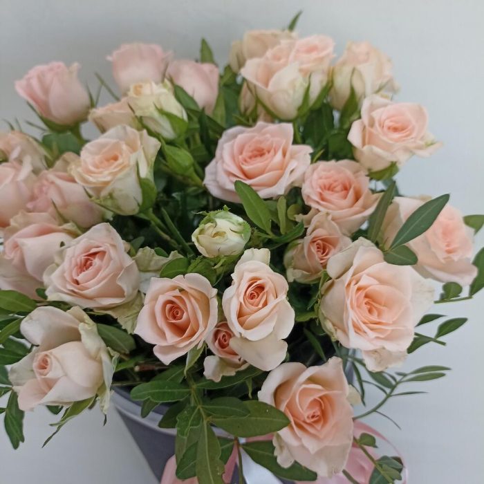 Роза кустовая – 7 шт.Оазис – 1 шт.Фисташка – 2 шт.Коробка – 1 шт.