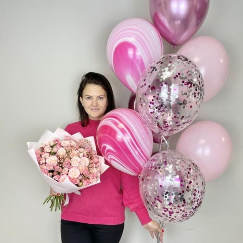 Кустовые розы с шарами