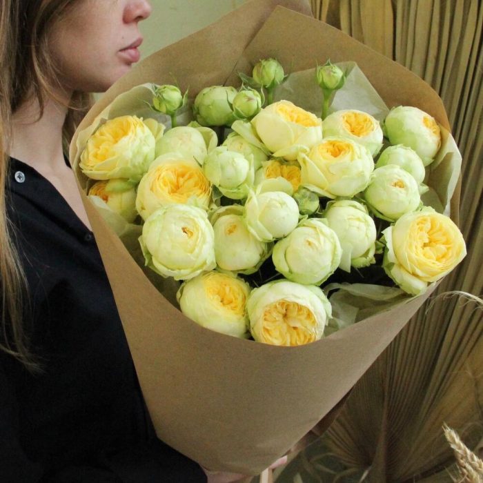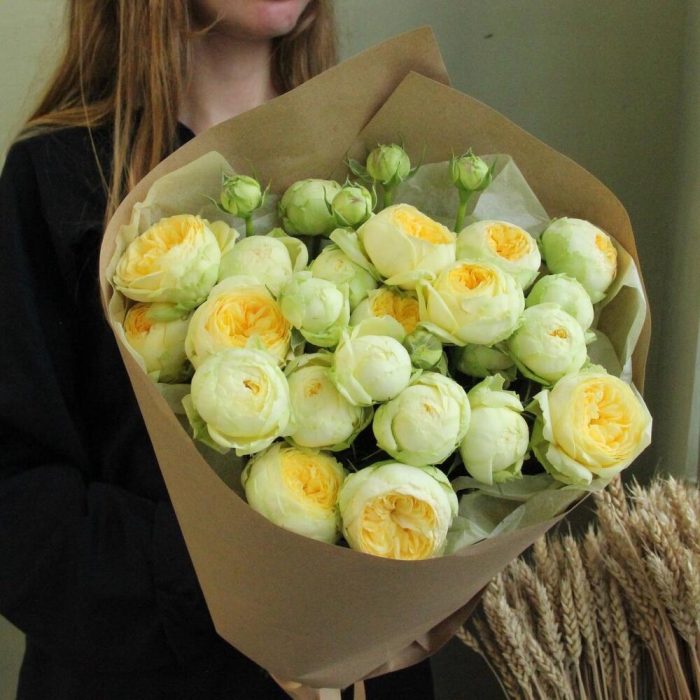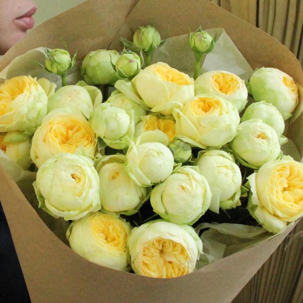 Роза кустовая пионовидная – 9 шт.Упаковка крафт – 1 шт.