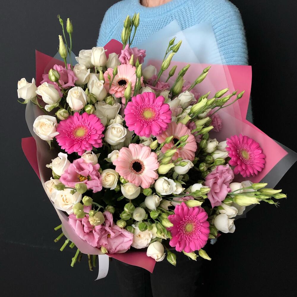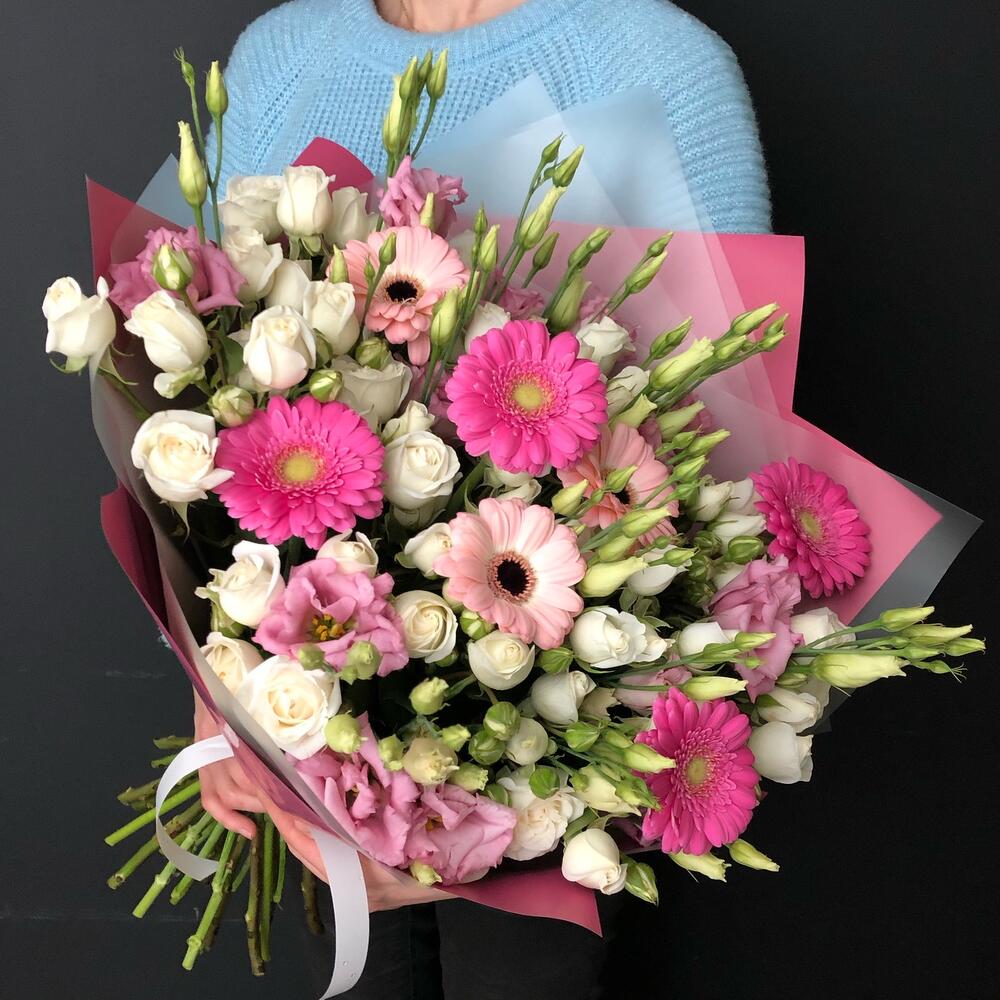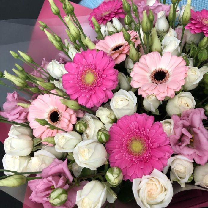 Категории: Герберы, Лизиантусы, Розы