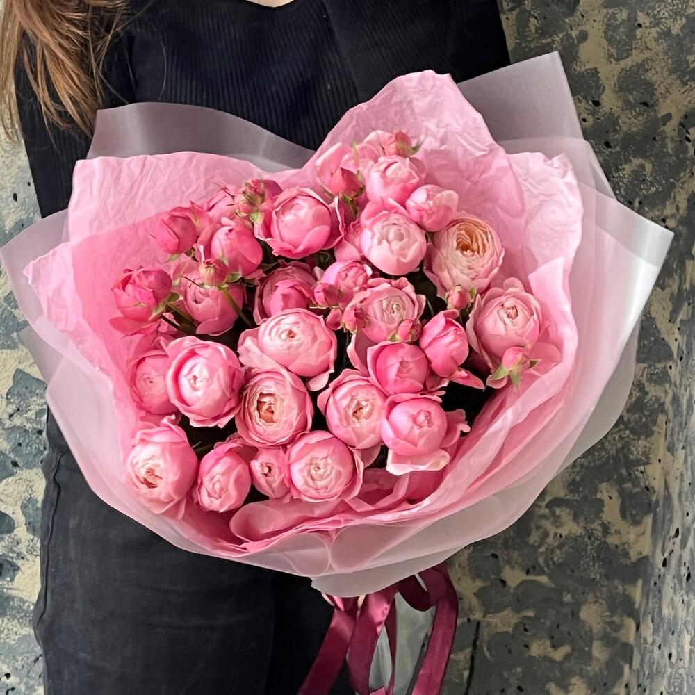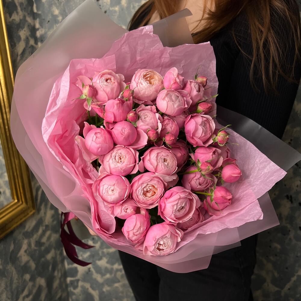 mono bouquet 146 из кустовых пионовидных роз сорта Silva Pink