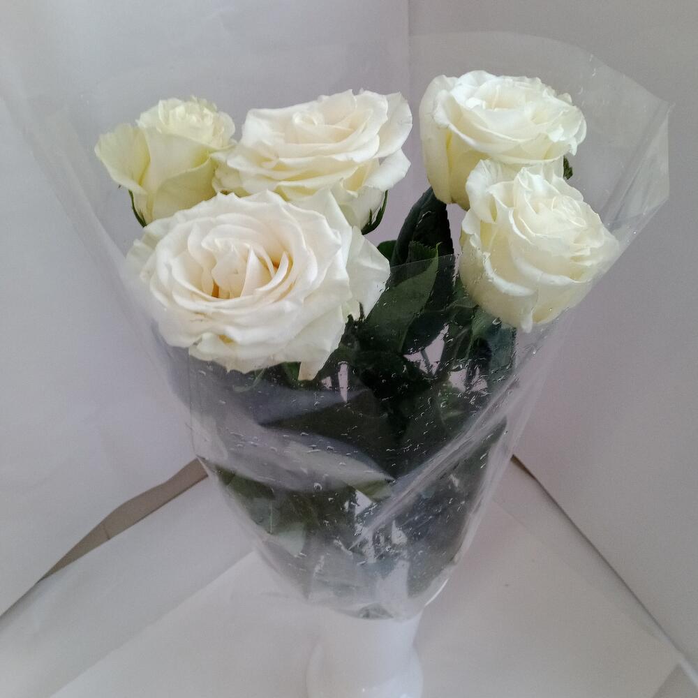 Пленка прозрачная – 1 шт.роза белая 70 см эквадор – 5 шт.