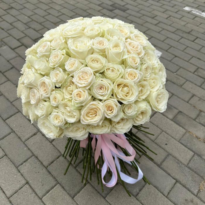 Метки: 101 роза, Белые розы, от 5000 руб, Роза 70 см