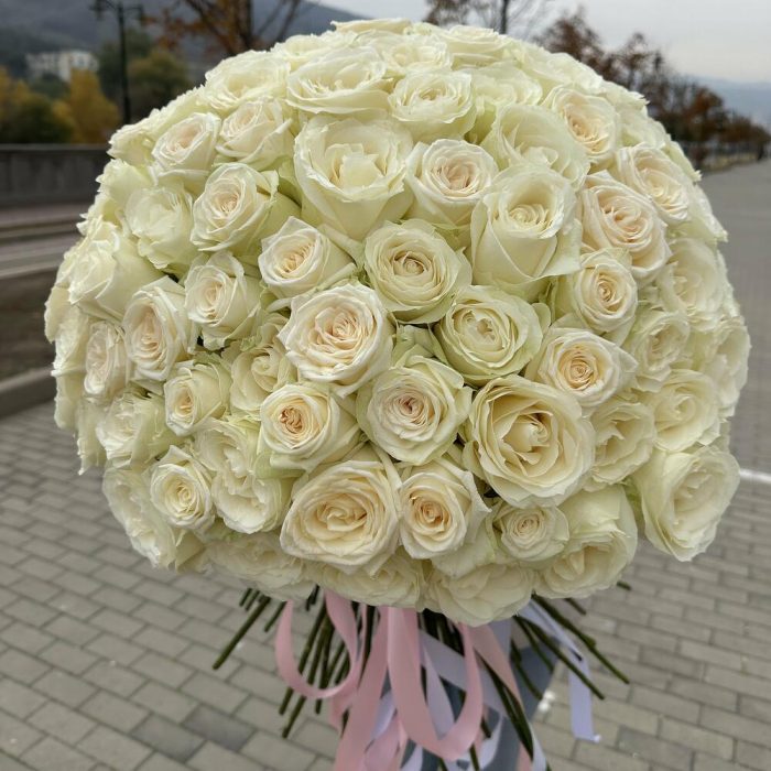 Монобукет из 101 белой розы