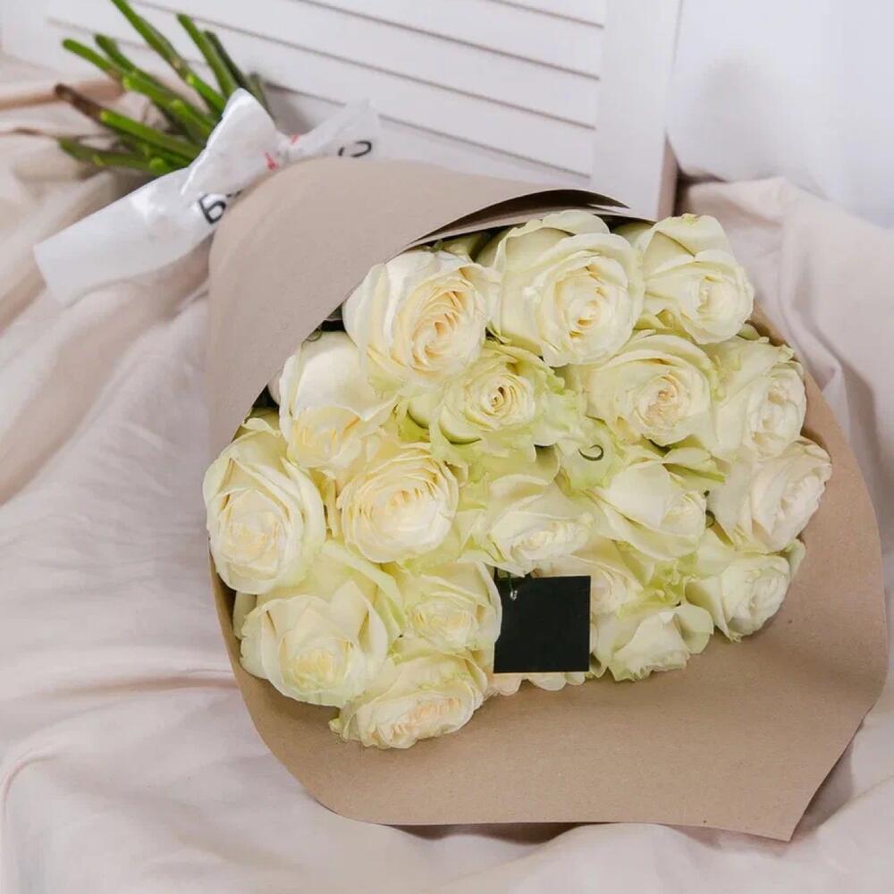 роза mondial 60 см – 19 шт.Упаковка крафт – 1 шт.Лента атласная – 1 шт.