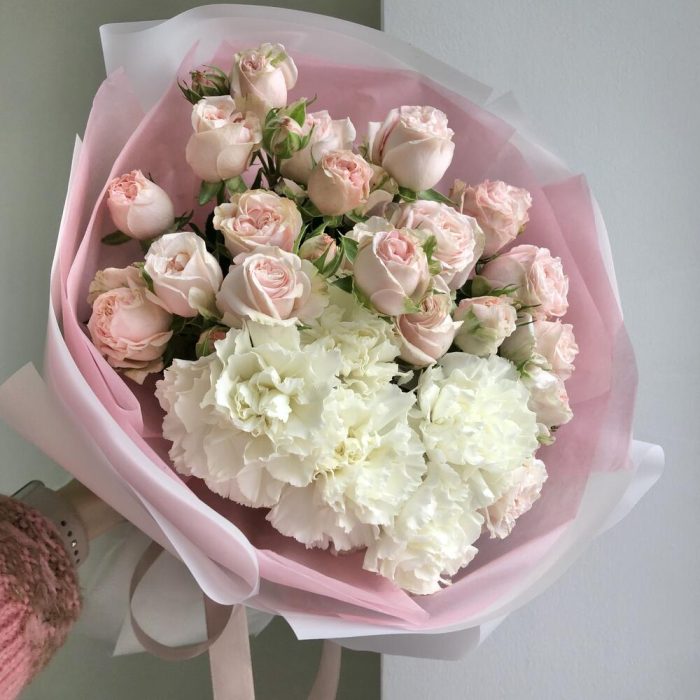 Гвоздики, Пионовидные розы, Розы