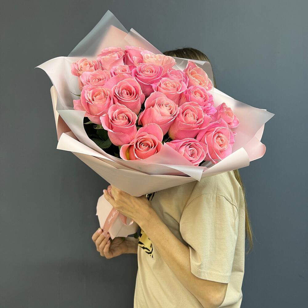 Атласная лента – 1 шт.Роза Эквадор 60 см – 21 шт.Дизайнерская упаковка – 1 шт.