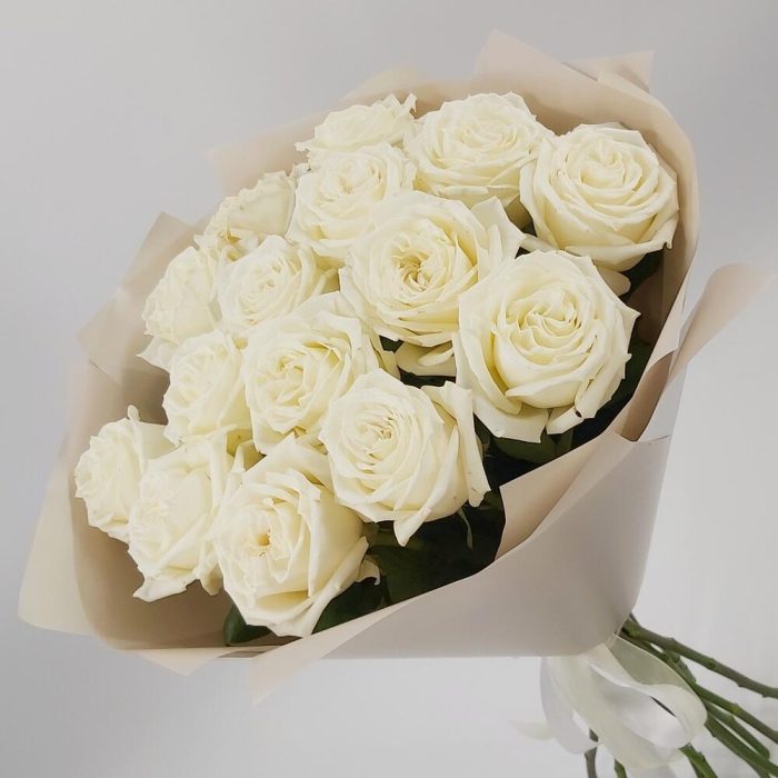 Метки: 15 роз, Белые розы, На свадьбу, от 2000 до 3000 руб, Роза 60 см