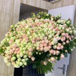 Роза бомбастик – 101 шт. Открыточка с вашими пожеланиями – 1 шт. доставка – 1 шт.