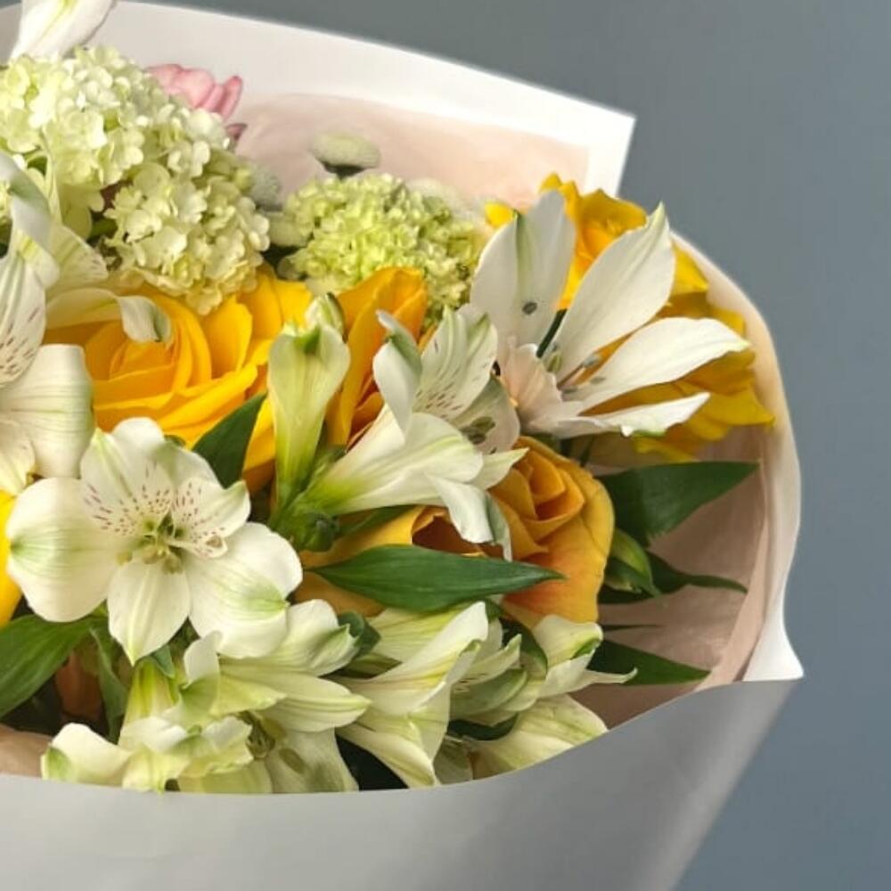Альстромерия – 3 шт. Вибурнум – 1 шт. Роза – 6 шт.