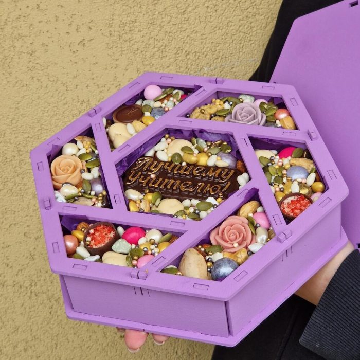 арахис в кунжуте и меде – 150 гр.арахис в сахарной глазури – 150 гр.арахис в белом шоколаде – 150 гр.Фундук – 50 гр.пекан в скорлупе – 3 шт.Грецкий орех – 50 гр.роза шоколадные – 3 шт.конфеты комильфо – 2 шт.конфета тоффи – 1 шт.Шоколадная надпись – 50 гр.грецкий орех в шоколаде – 40 гр.смородина в шоколаде – 25 гр.миндаль в клубничном шоколаде – 15 гр.арахис в цветной глазури – 16 гр.Миндаль – 20 гр.рисовые шарики в шоколаде xl – 15 гр.Кешью – 15 гр.шоколад в глазури – 15 гр.арахис в перламутре – 15 гр.семена подсолнечника в шоколаде – 15 гр.семена тыквы – 10 гр.рисовые шарики в шоколаде мини – 5 гр.