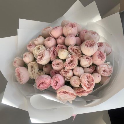Бомбический букет из белых роз в стильном оформлении станет замечательным подарком для ваших близких