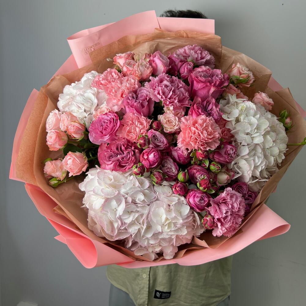 Гвоздики, Кустовые розы, Лизиантусы, Пионовидные розы, Розы