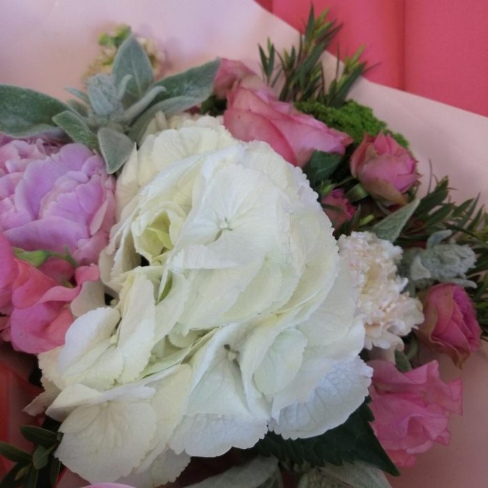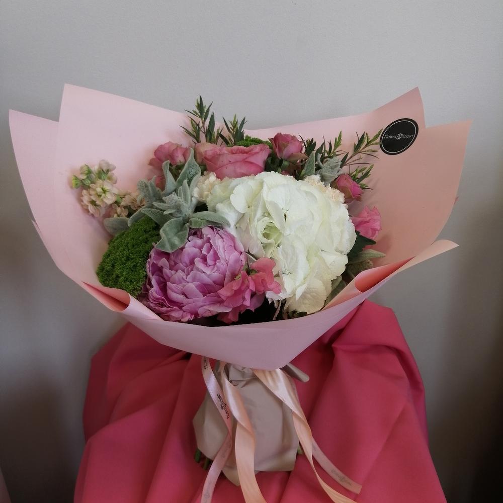 Авторский букет из королевской гортензий и белых роз